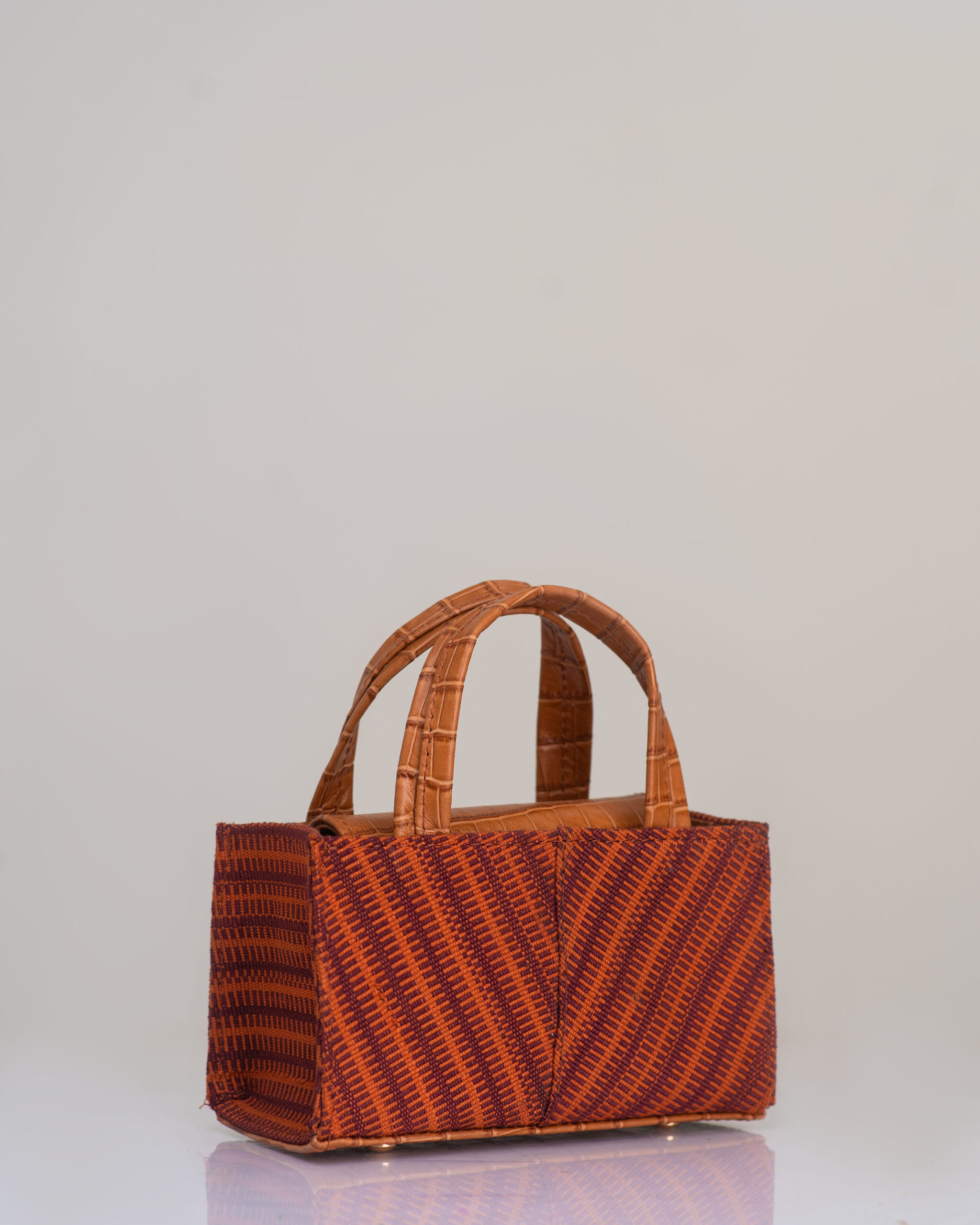 The Ella Micro Tote is a small but striking piece that blends traditional African fabric with modern design.